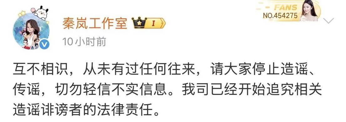 秦岚管事室回应和金子涵相干:互不了解,从未有过任何来去.搜狐.2026-04-09!