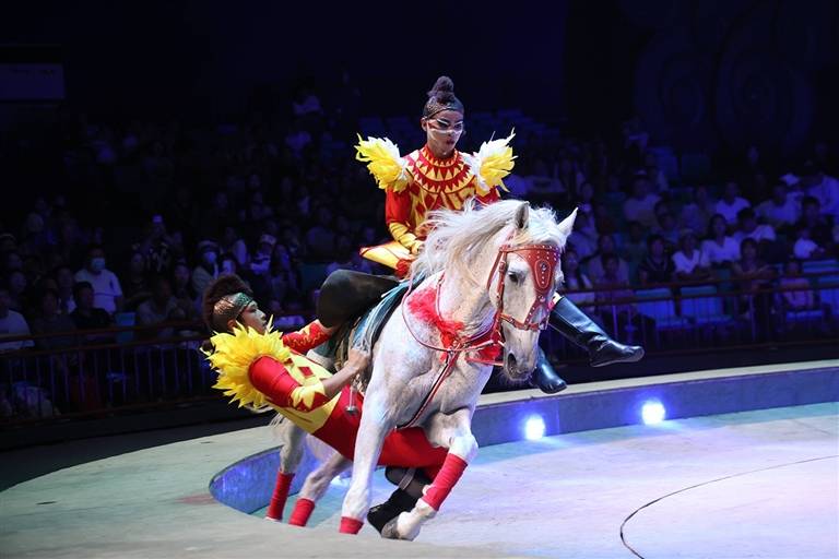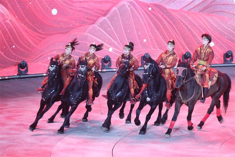图① 2026中国杂技大联欢节目中,河南金贵艺术团的马戏团演员在策马飞奔。刘俊涛 摄